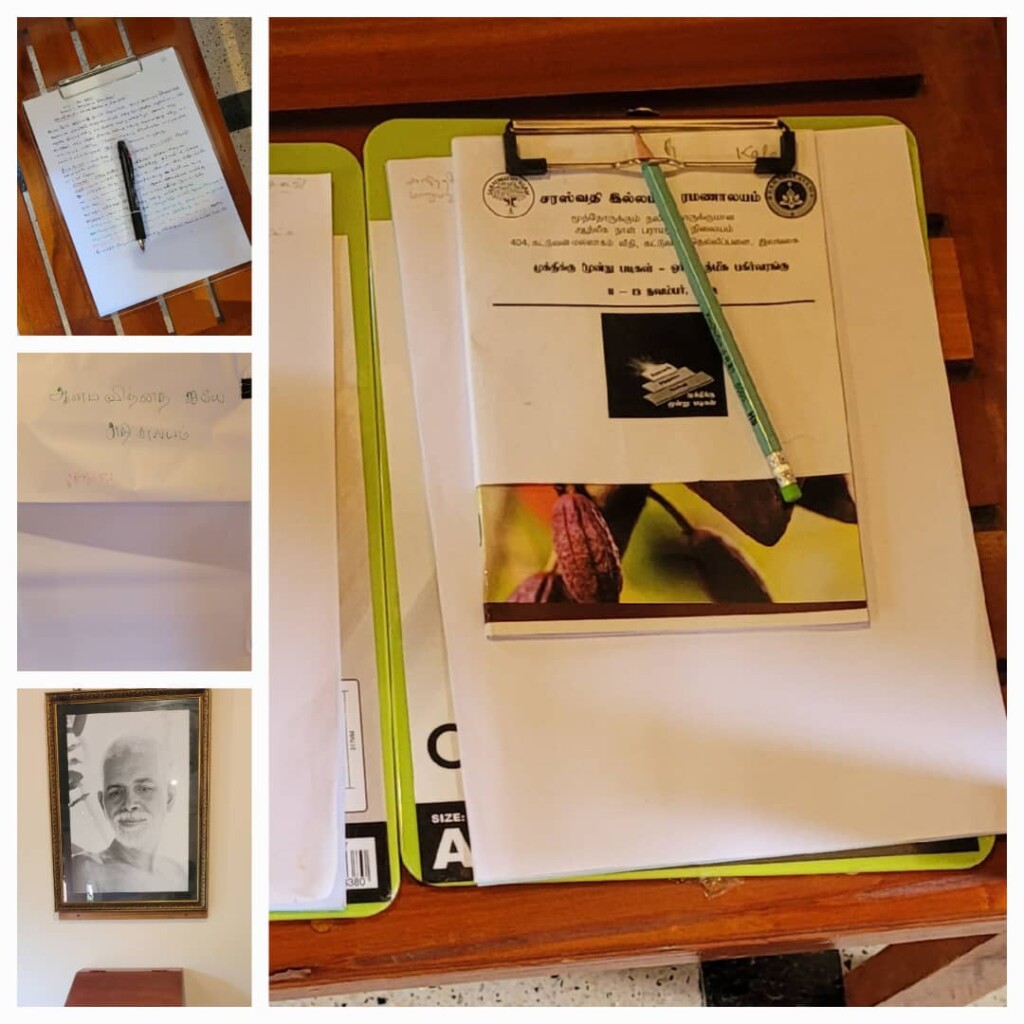 A three day retreat on the topic of “Shravanam, Mananam and Nithithyasanam” commenced on 11th of November 2022 at Ramanalayam, Sri Lanka. The residential retreat is being attended by participants from across the island examining the importance of the three steps to Mukthi and drawing scriptural references from several texts including Upadesa Unthiyar composed by Bhagavan Ramana and Bhagavat Gita. The three sessions in the mornings include 45 mins of instruction and 45 mins of contemplation. The afternoon consists of seva and a satsang analysing the day’s discussions. The sessions are being guided in Tamil by Swami Gunatitananda Saraswathy of Chinmaya Mission, Sri Lanka.