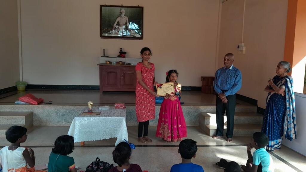 As you are aware, Value Education Calsses for primary school children in the locality of the Ashram has been ongoing since November last year. Some 30 – 50 children have been attending the classes in two age categories.